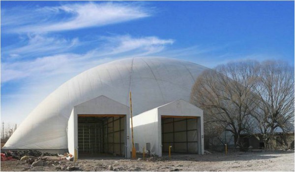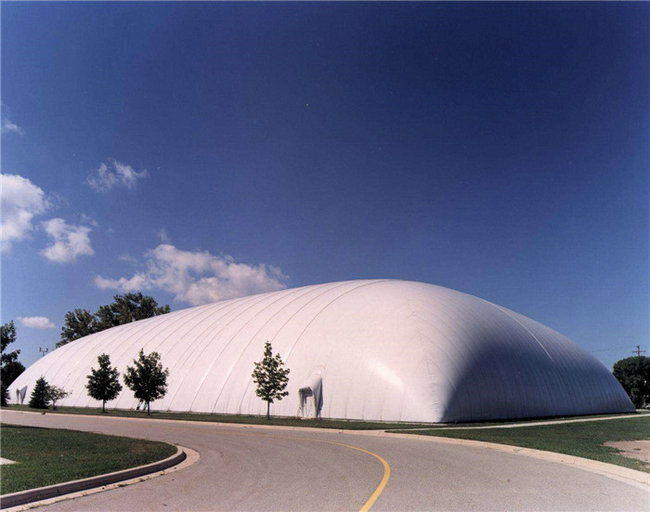 充氣膜結構是指在以高分子材料制成的薄膜制品中充入空氣后而形成房屋的結構。在形式上充氣膜結構與傳統(tǒng)建筑大有不同,又可分為氣承式膜結構和氣脹式膜結構(或叫氣肋式膜結構)。充氣膜結構有單層、雙層、氣肋式三種形式,充氣膜結構一般需要長期不間斷地能源供應。低拱、大跨建筑中的單層充氣膜結構必須是封閉的空間,并保特一定的室內外氣壓差。